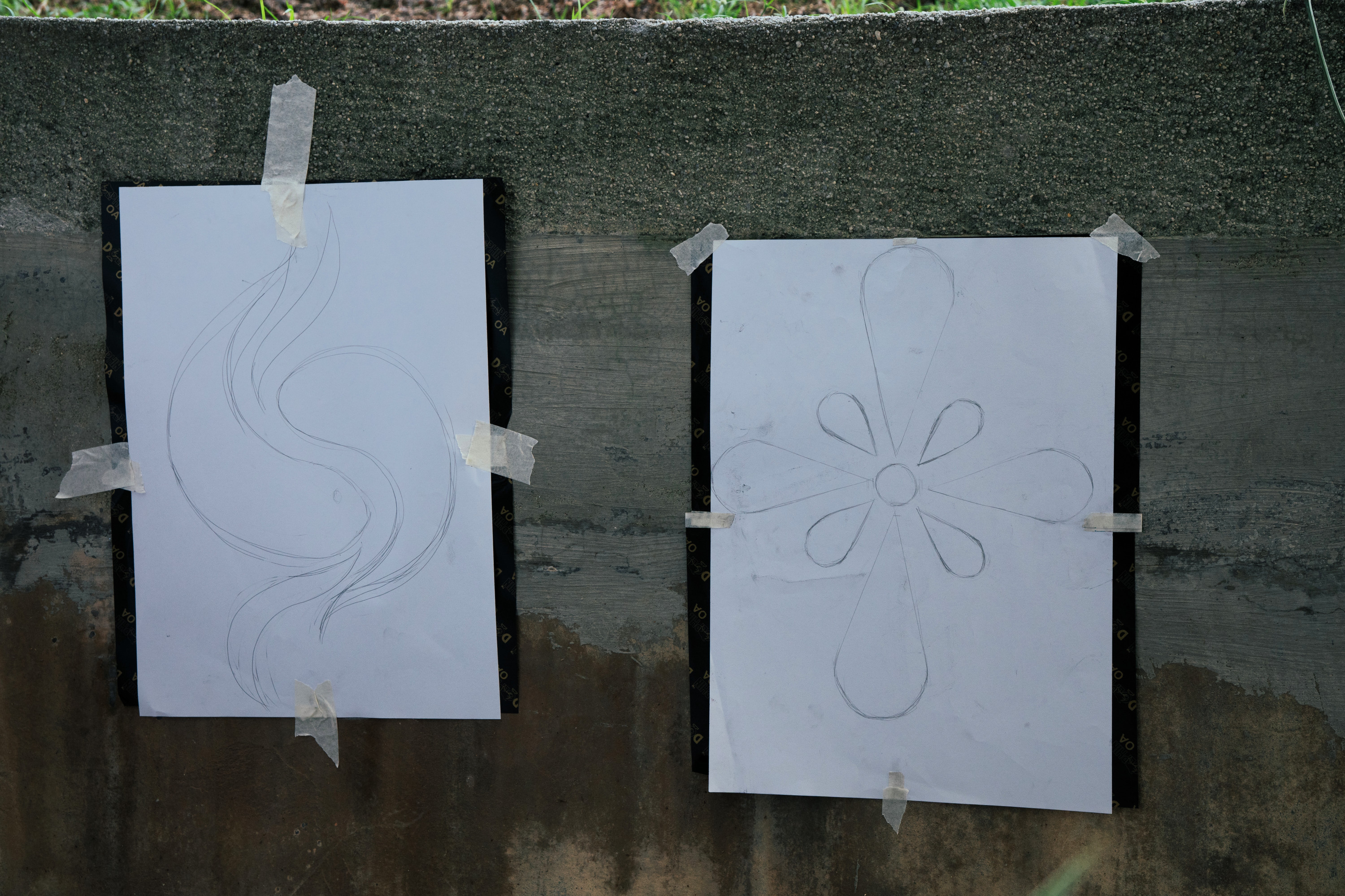 Mr. Srđan and his students went on a moss-hunting activity, collecting fresh green moss growing on the brick walls along the Mont’Kiara walkway to be used as the main material for this project. Students were instructed to sketch their own designs on paper, ranging from insects and abstract patterns to a tiger paw. These designs reflected each student’s personal choice and creativity.